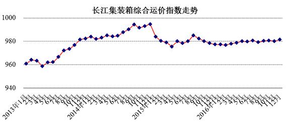 集装箱综合运价指数 | 977.46 | 980.14 | 981.46 | 0.13% | 0.41% |
