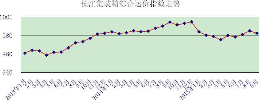 中游集装箱运价指数 | 996.18 | 988.65 | 985.61 | -0.31% |
