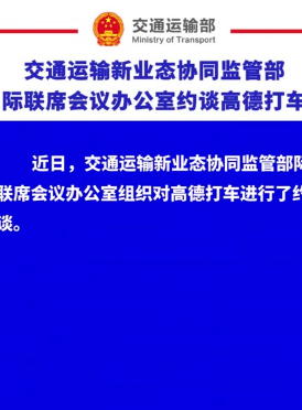 交通运输新业态协同监管部际联席会议办公室约谈高德打车