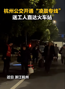 暖心!杭州公交开通“凌晨专线”,送工人们直达火车站,让他们返乡的路途能够再“短一点”❤️@韵味杭州 #来我家乡过新年