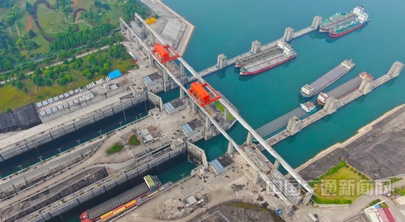 因受近期船舶过闸流向影响,三峡大坝近坝水域、坝上船舶出现非对称性积压。为尽快疏解三峡大坝水域积压船舶,近日长江三峡通航管理局将北线船闸由运行上行闸次换为运行下行,实现双线船闸全部向下运行(如图),确保长江上游船舶及时过闸。