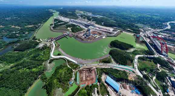 作为平陆运河三大核心枢纽之一,青年枢纽肩负着调节航道水位、保障船舶安全通航、区域防洪排涝等多重功能。青年枢纽船闸共需吊装4套8扇人字门,上闸首每扇人字门分4节进行工厂预制与现场吊装,每扇人字门重达341吨;下闸首每扇人字门分6节制造吊装,每扇门重达645吨,累计需完成40节人字门门叶吊装任务。截至目前,平陆运河项目累计完成投资超600亿元,土石方开挖和枢纽船闸主体混凝土浇筑完成量超90%,航道基本成型段的施工长度完成率超83%,正全力推进枢纽船闸混凝土浇筑、航道工程建设等关键工序。