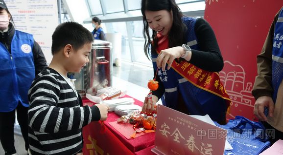 在新海港客滚运输码头,随处可见新春元素,寓教于乐的知识问答,让不少旅客停下脚步参与互动,原本匆忙的旅途多了些许趣味。海口海事局、中国船级社海南分社、交通运输部珠江航务管理局琼州海峡办事处等单位的工作人员组成志愿服务队,为过往旅客赠送免费的姜茶、对联,让返乡的旅途更加温馨。