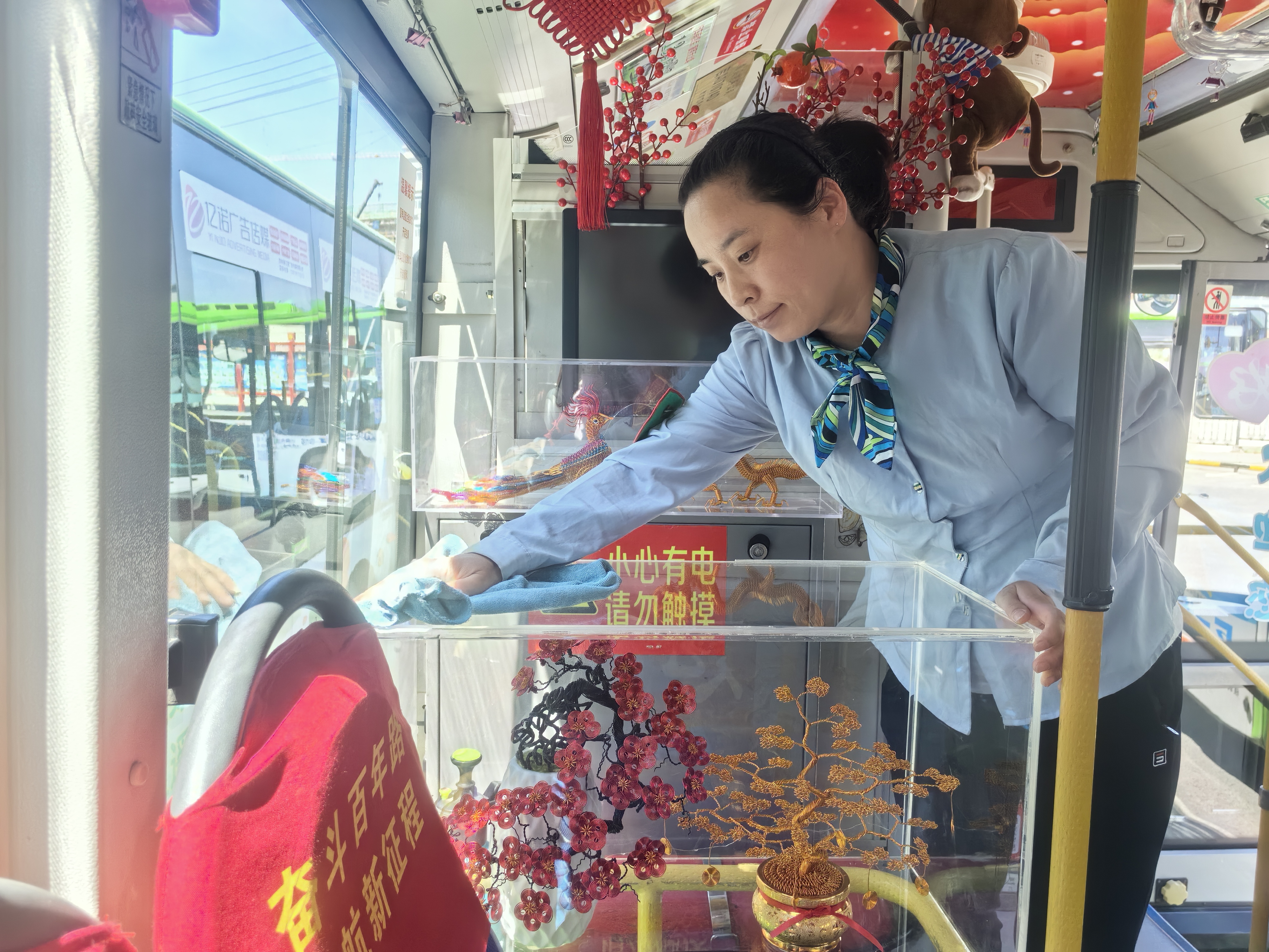 “乘客需求无小事!”王岐把乘客当作亲人,通过细心观察各年龄段乘客乘车时的状态,不断优化自身服务。针对年轻人上车喜欢玩手机的特点,她坚持每站车载播报的同时,用口述的方式再次提醒,避免乘客坐过站。“每天早高峰后,车上老年乘客增多,他们大部分是去超市购物或者到公园遛弯,手里总是拿着各种物品。”王岐介绍,老年乘客较多时,她提醒乘客站稳扶好、礼让老人。此外,王岐还安装了儿童专用座椅、遮阳板、针线盒、便民服务箱等,为乘客提供更多便利。